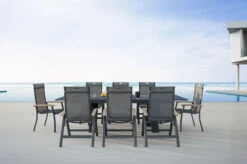 HARTMAN Aruba Esstischgarnitur, xerix, Alu/Textilene, Premium Ausziehtisch 180/240x100cm, 4 Stapel-, 2 Multipositionssessel