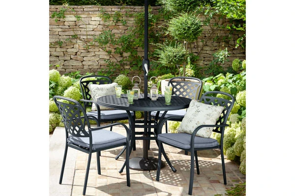 HARTMAN Preston Esstischgarnitur, Grau, Alu-Guss, 4 Dining Sessel, Inklusive Polster