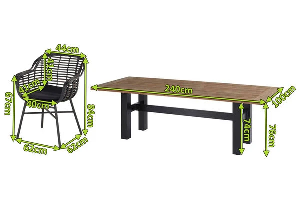 HARTMAN Yasmani / Cecilia Set, Schwarz/vintage Brown, Alu/Teakholz/Polyrattan, 6 Diningsessel, 240x100cm