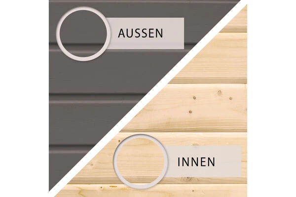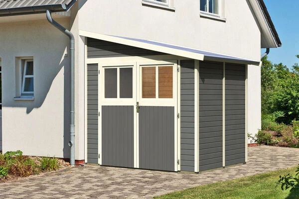 1x KARIBU Anlehnhaus Bomlitz 2 , terragrau , ca. 255 x 181 x 243 cm