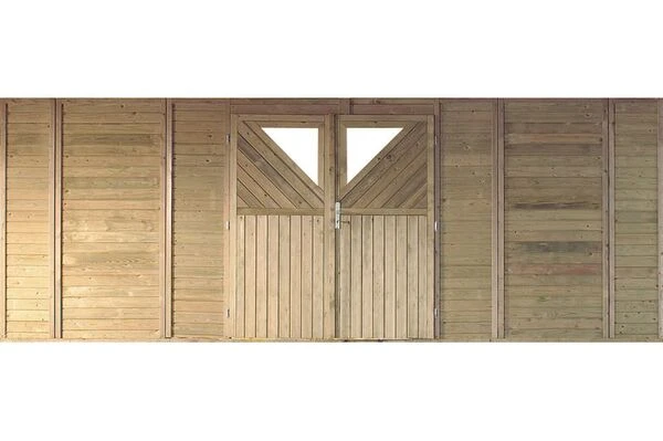 Die passende Front mit Doppeltür aus dem KARIBU-Sortiment für Ihr Carport, wahlweise Einzelcarport oder Doppelcarport, erhalten Sie hier. Sie ist ca. 200 cm hoch und je nach Ausführung ca. 250 cm bzw. ca. 540 cm lang. Die Front wird aus Kiefer-Massivholz hergestellt.