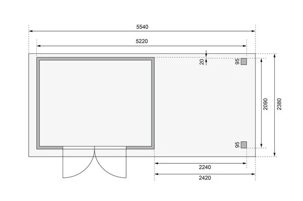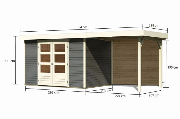 KARIBU Gartenhaus Askola 4, Terragrau, Fichtenholz 19mm, 554 X 217 X 211 Cm, Flachdach, Anbau 2,4m Mit Rückwand