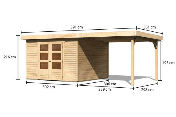 - Artikelbezeichnung: Askola 6 im Set mit Anbaudach 2,80 m Breite