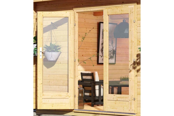 Das Gartenhaus Radeburg aus nordischer Fichte von KARIBU wird aus 40 mm Wandbrettern im Steck-/Schraubsystem gefertigt und kann somit rasch und einfach aufgebaut werden. Das praktische Pultdach aus Massivholz sorgt dafür, dass das Gartenhaus schnell und wirkungsvoll gegen Witterungseinflüsse geschützt ist. Dank der Seitenhöhe von ca. 205 cm und einer Firsthöhe von ca. 229 cm sorgt das Haus innen für viel Platz. Kesseldruckimprägnierte Bodenbalken sorgen für optimalen Schutz gegen aufsteigende Feuchtigkeit. Durch die Positionierung unter dem Gartenhaus schützen die Bodenbalken effektiv vor Staunässe und Spritzwasser. Das Gartenhaus wird mit der, praktischerweise schon vormontierten Tür, im stabilen Massivholzrahmen ausgeliefert und bietet dank der großen Öffnung bequemen Zutritt in das Haus. Nebenbei bietet sie effektiven Schutz vor Diebstahl. Gleichzeitig lassen die großzügigen Lichtausschnitte im jeweiligen Türflügel, sowie zwei große Frontfenster ausreichend Tageslicht in das Gartenhaus einströmen.