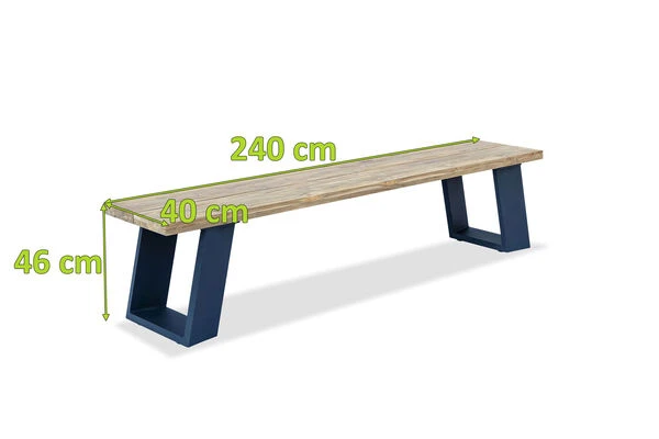 1x OUTFLEXX® Gartenbank, recyceltes FSC®-Teakholz/Aluminium, ca. 240 x 40 x 46 cm