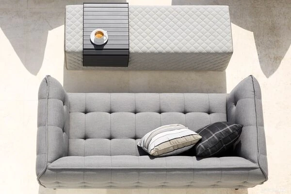 2-Sitzer Sofa Cozy von OUTFLEXX® aus Alu/Sunbrella, in der Farbe flanelle