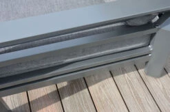 Das Untergestell des Möbelstücks besteht aus Aluminium, dies macht es nicht nur stabil, sondern sorgt auch dafür, dass es sich aufgrund des relativ geringen Gewichts ganz leicht hin und her stellen lässt. Das Aluminiumgestell wird mit Polyrattangeflecht bespannt. Das halbrunde Geflecht ist in der Farbe grau (Faser w5) gehalten und passt so wunderbar zu allen möglichen Terrasseneinrichtungen. Gemütliche Sitz- und Rückenpolster (100 % Olefin (200 g/m³)) mit einer Stärke von ca. 7 cm sorgen für höchsten Sitzkomfort. Farblich sind die grau melierten Polster perfekt auf das Geflecht abgestimmt. Die synthetische Faser Olefin wird für ihre Hitzebeständigkeit und optimalen Trage- und Pflegeeigenschaften geschätzt. Sollten Sie einmal Falten in Ihren Polstern haben, werden diese bei Wärme von alleine verschwinden, sodass die Bezüge komplett bügelfrei sind. Textilien aus Olefin sind bequem, hautkühlend, waschbar und bügelfrei. Sie eignen sich perfekt für den Einsatz im Freien, was nicht zuletzt an ihrer wasserabweisenden und atmungsaktiven Materialzusammensetzung liegt.