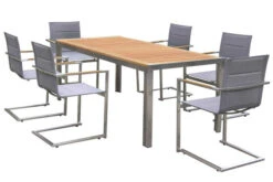 Esstischgruppe von OUTFLEXX® für 6 Personen aus Teak/Edelstahl