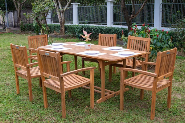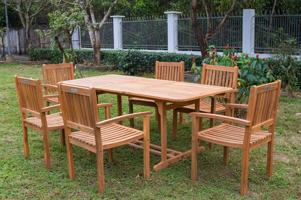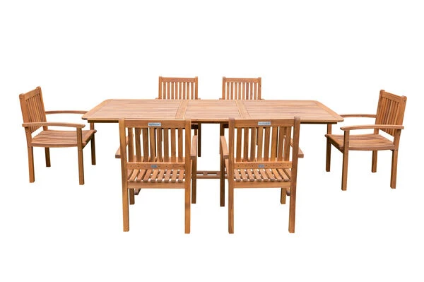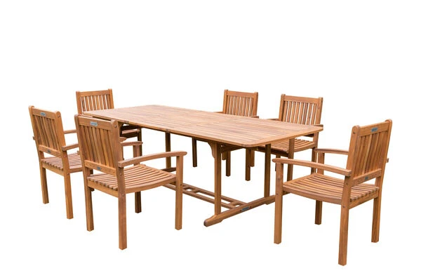 OUTFLEXX® Esstischgarnitur aus FSC®-zertifiziertem Akazienholz für sechs Personen