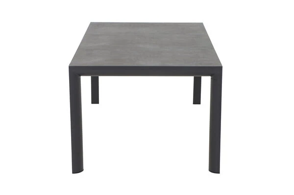 Wer das Besondere liebt ist mit diesem Esstisch bestens bedient. Der Tisch bietet mit seinen Maßen von ca. 180 x 100 x 74 cm Platz für ca. 6 Personen – so steht dem gemütlichen Mittagessen mit der Familie nichts mehr im Wege. Das Gestell wurde aus pulverbeschichtetem Aluminium in matt anthrazit hergestellt, was den Tisch besonders haltbar macht. Die Tischplatte besteht aus hochwertigem Keramik, während die Tischbeine für ein weiteres optisches Highlight sorgen. Durch die großzügige Unterschubhöhe kann man gemütlich mit vielen Arten von Sesseln an diesem Tisch Platz nehmen. Der Tisch hat ein Gewicht von ca. 59 kg, und ist somit perfekt gegen Windstöße geschützt. Die Fußkappen bestehen aus schwarzem Kunststoff und schützen den Boden vor unschönen Kratzern beim Verrücken des Möbelstücks.