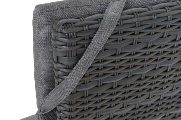 | Stabiles Polyrattan-Geflecht Das halbrunde Polyrattan-Geflecht GARDINO® zeichnet sich besonders durch seine Lichtechtheit und Stabilität aus. Es ist zudem besonders wasserabweisend und wetterfest. Das robuste Material schützt das Möbelstück somit bestens vor Witterungseinflüssen. | |