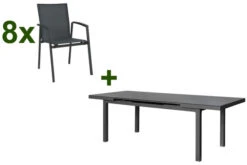 STERN New Top Esstischgarnitur aus Aluminium/Textilene, Anthrazit, 8 Stapelsessel und Premium Ausziehtisch 180/240x100x77cm